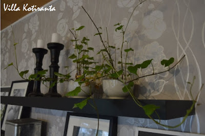 Viimeisimmässä postauksessa kerroinkin, kuinka rohkenin jo kaksi versoa napsaista poikki ja asettaa vesilasiin juurtumaan. Noh, tuon postauksen jälkeen innostuin napsimaan muutaman lisää, ja nyt kymmenisen versoa odottelee vedessä juuriaan. :)